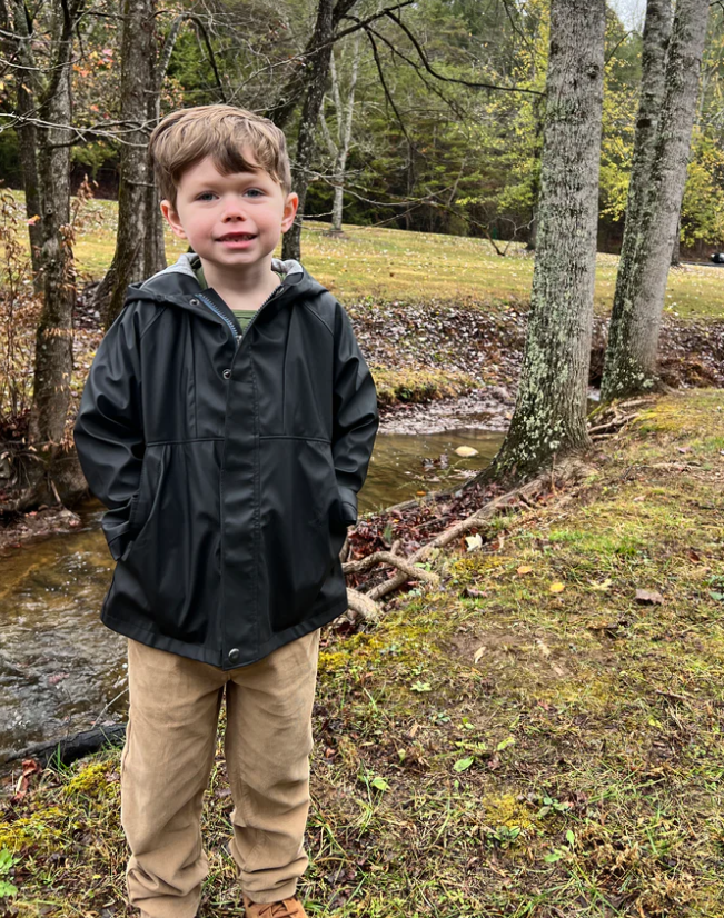 Black water resistant rain jacket for those wet days and chilly days, perfect for back to school!